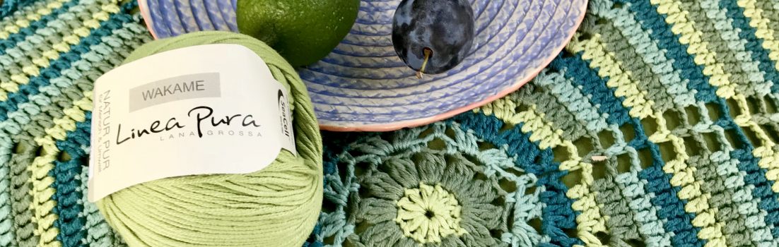 Als Material habe ich dafür die Wakame von Lana Grossa gewählt, zu einem da ich die Garnmischung aus 75% Biobaumwolle und 25% Seacell, einer Viskose-Faser, die aus Algen gewonnen wird als sehr interessant empfinde – dadurch hat das Garn einen wunderbaren Griff & einen seidigen Glanz! (Einen ökologisch wertvollen Beitrag hinsichtlich nachhaltiger & innovativer Fasergewinnung liefert das Garn dabei noch so nebenher) Und die breite Farbpalette lässt keine Wünsche offen und hat unter anderem so wunderbare Grüntöne!