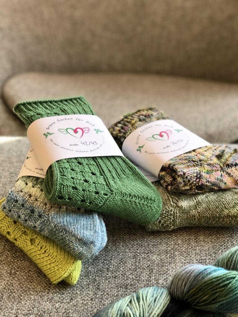 Wer auch grüne Socken stricken und spenden möchte ist herzlich eingeladen mitzumachen! Es ist toll, mit dabei zu sein und wer keine Zeit zum Stricken hat, kann auch gerne grüne Sockenwolle spenden – alle Infos & Adressen sind hier (click) zu finden.