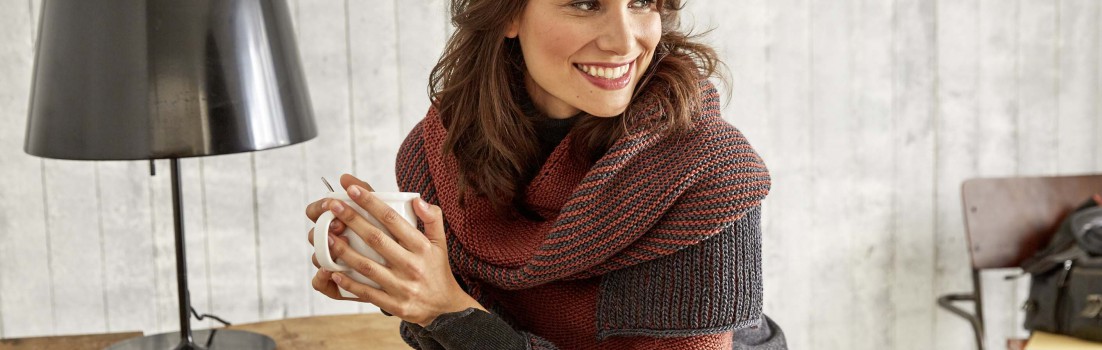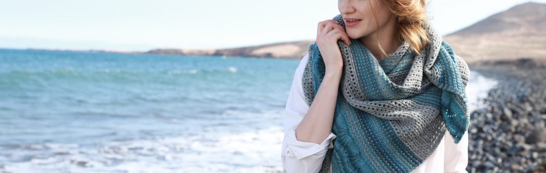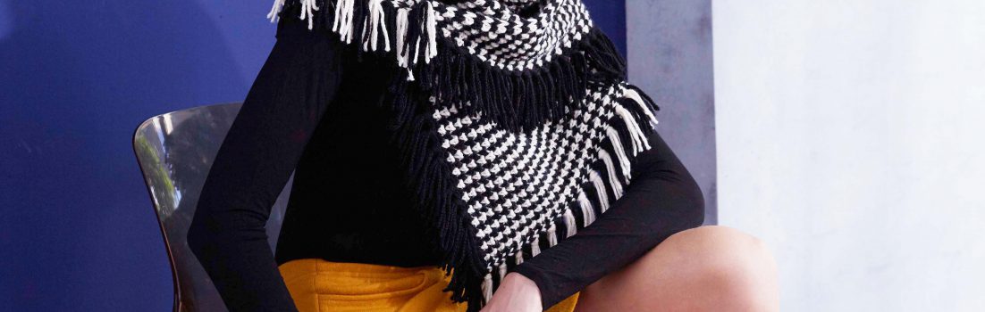 Am 05.09.2017, ab 12.15 Uhr zeige ich im ARD Buffet im Ersten wie ihr dieses schöne Schaltuch aus Schachenmayr Cordelo stricken könnt, die Anleitung steht ein Jahr auf der ARD Buffet Webseite kostenlos zur Verfügung, anschließend gibt es die Anleitung auf Ravelry (Click) und sie ist Teil der Buches „Mein ARD Buffet Strickbuch“ (click) Applikationen sind voll im Trend, daher habe ich auf mein Schwarz-Weißes Tuch ein Applikation aufgeheftet (die ich dann auch bei Bedarf wieder ablösen kann) – coole Applikationen gibt es z.B. hier bei Makema (Click). Damit das Tuch gut sitzt, habe ich 1 Paar große (= mind. 21 mm) dekorative Annähdruckknöpfe an die beiden Ecken angenäht (die Ecken, die das Model unten auf dem Bild in der Hand hat, ein Ösenteil auf die Vorderseite, das 2. Ösenteil auf die Rückseite), Druckknöpfe von Prym, ich kaufe meine immer wenn ich in Frankfurt bin bei Wächtershäuser (click) – da gibt es im Geschäft noch viele hübsche andere Aufnähdruckknöpfe als online 🙂 Zu der dunkelroten Materialvariante aus Rowan „Sultano“ (ab Oktober im Hander erhältlich) und …